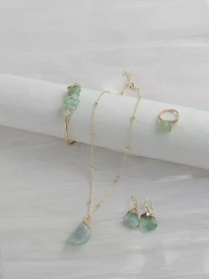 Nye 2025 Design Smykkesett ( Kjede, øredobber, ring, armbånd ), Black Turmaline