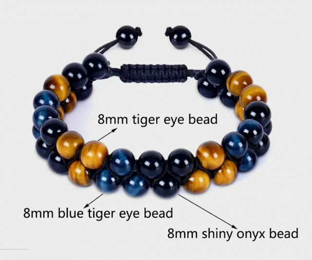 Nye Chambhala BlÅ & Gyllen Tigerøye, Sort Onyx ArmbÅnd , justerbare