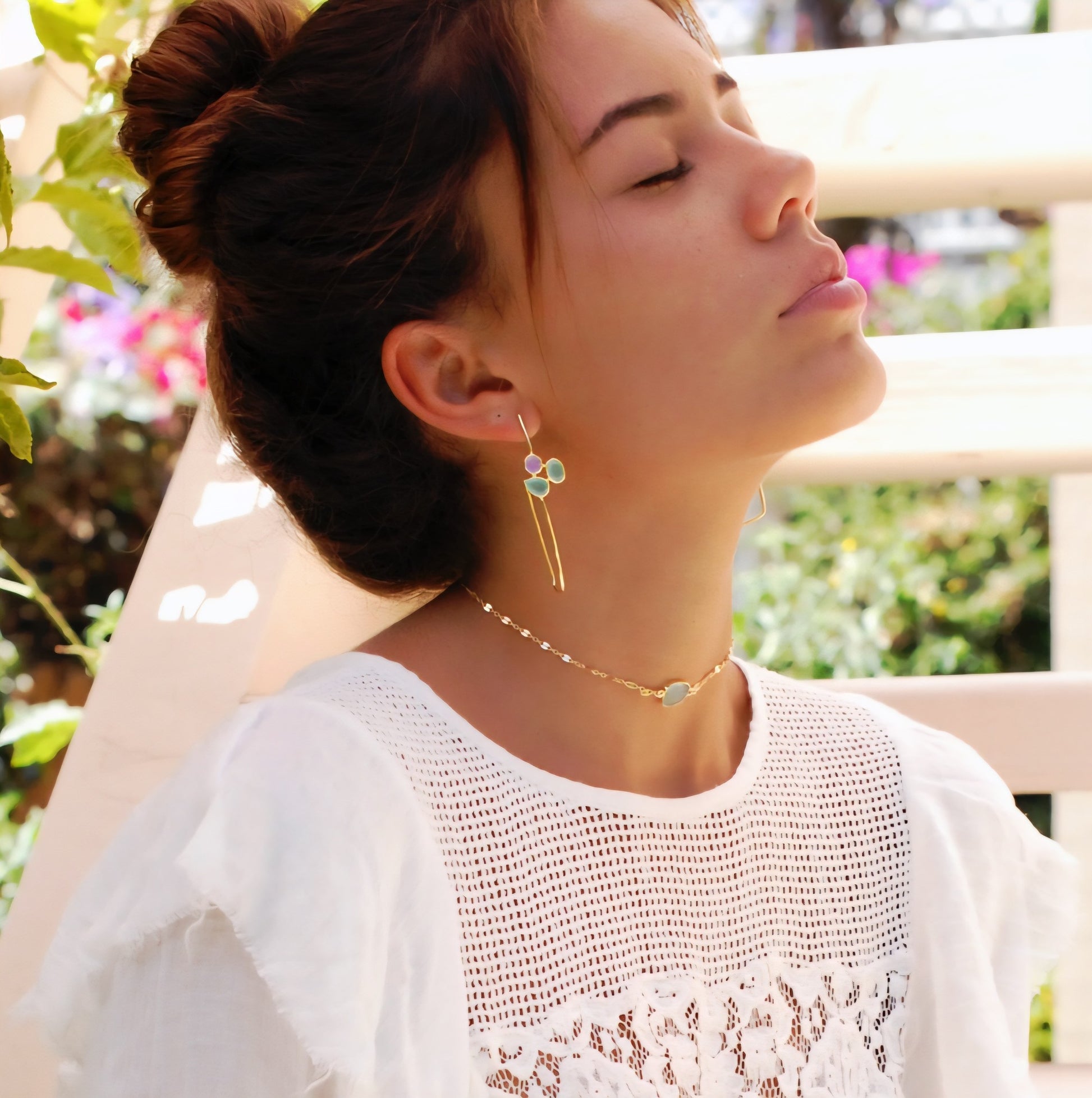 Nye CILA " SANDY " av øredobber med Aqua Chalsedony, Purple Quartz, 18K Goldplated.