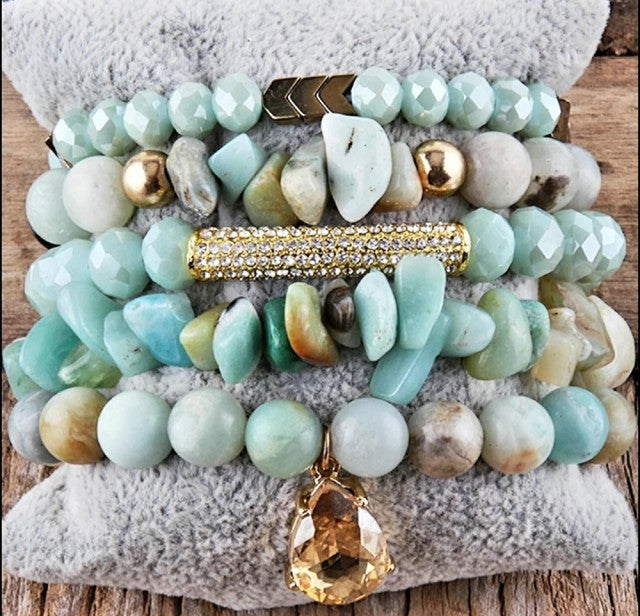 Nye, fleksible 5 rader armbÅnd med druzy Agat sten, Design 6 ( 4 Modeller )
