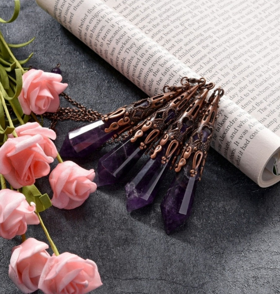 Nye, håndlagede pendler i Indisk Design, Ametyst med lenke..