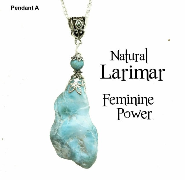 Nye, hÅndlagede rÅkrystall kjeder med Larimar anheng