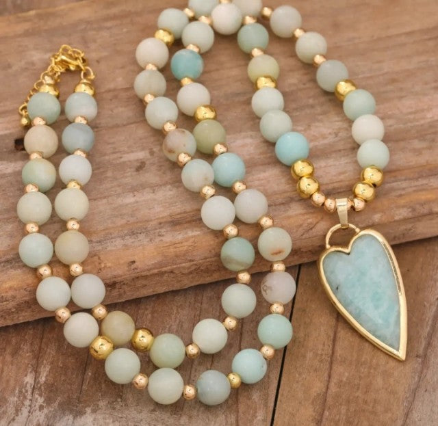 NYE FASHION CRYSTAL AMAZONITE QUARTZ m/ LONG HEART ANHENG