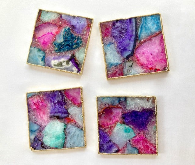 Ny, vakre og dekorative multicolor Agat Coasterskiver m/ 12mm gullkant ( Electroplated ) , stk. pris