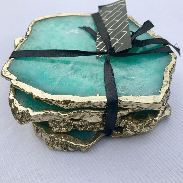 Nyhet ! Sjelden vakker Agat Aqua Coaster skiver turkisgrønn gullbelagt 10mm tykk kant, stk. pris