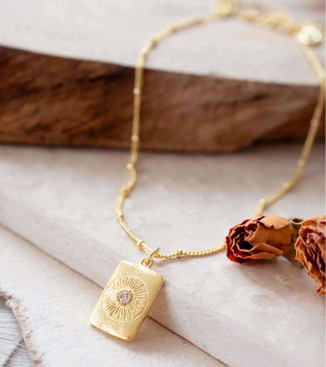 Nytt og vakkert "Evil Eye " Necklace , w/Center Cubic Zircona, 18K Goldplated