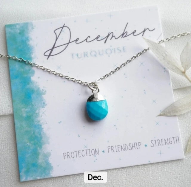 Nytt OVAL Birthstone Designkjede, Gold Electroplated, Desember - Turquise, 8x14mm