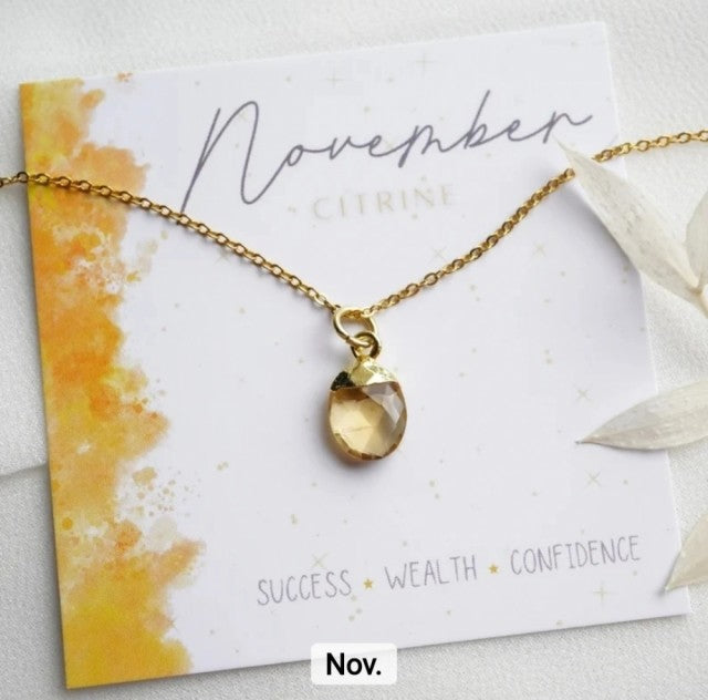 Nytt OVAL Birthstone Designkjede, Gold Electroplated, November - Citrine, 8x14mm