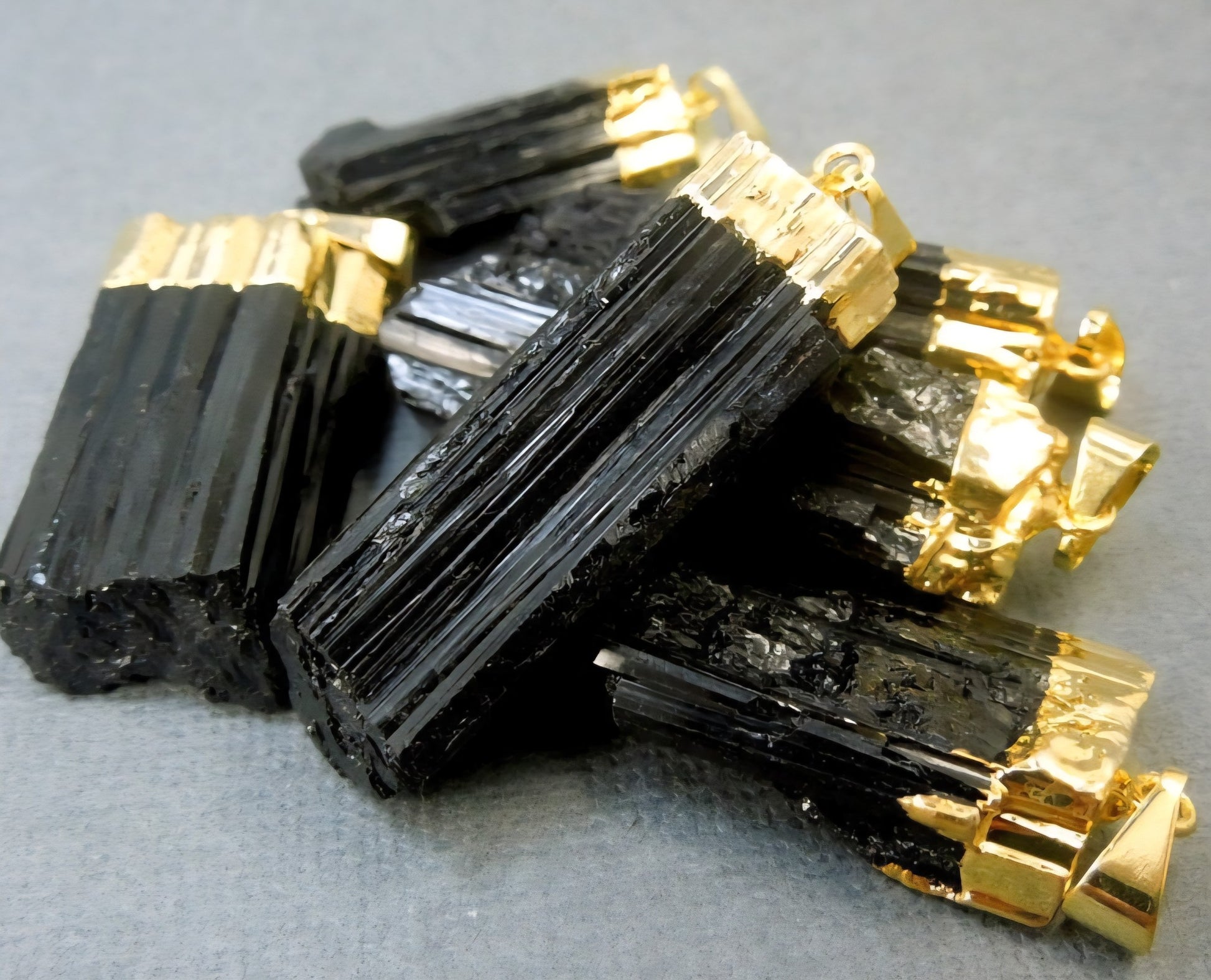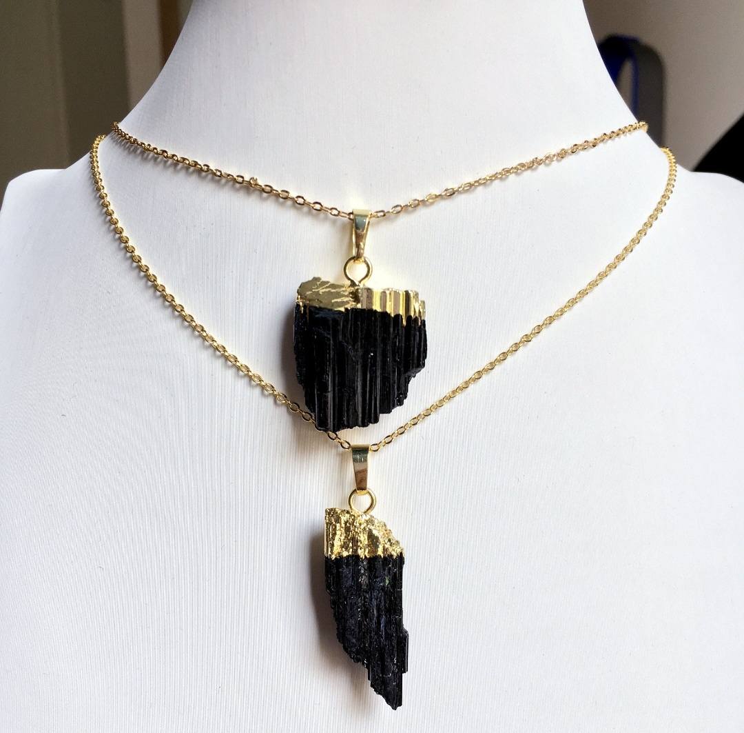 Nytt, vakkert Sort Turmaline Pillar Råkrystall Designkjede, Gold Electroplated