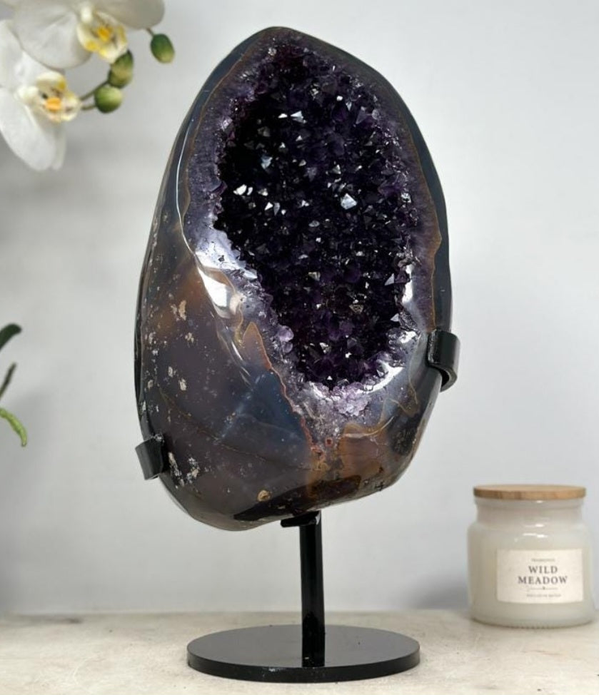 Stunning Natural Large dark Uruguay Amethyst & Agate Geode - MWS1439, - 28cmx13.5cm - 3,1kg