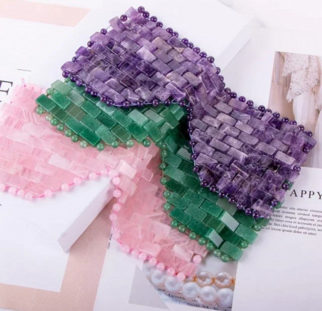 Premium AA Grade Håndlaget Eye Mask i Ametyst, Grønn Aventurin og Rosenkvarts