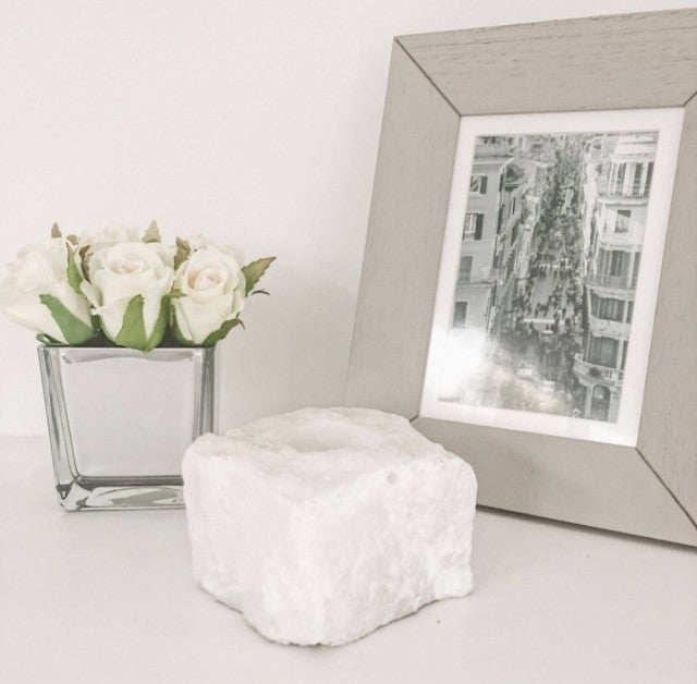 RÅkrystall Telys dekorasjon Hvit Kvarts, ca. 10 - 12 cm