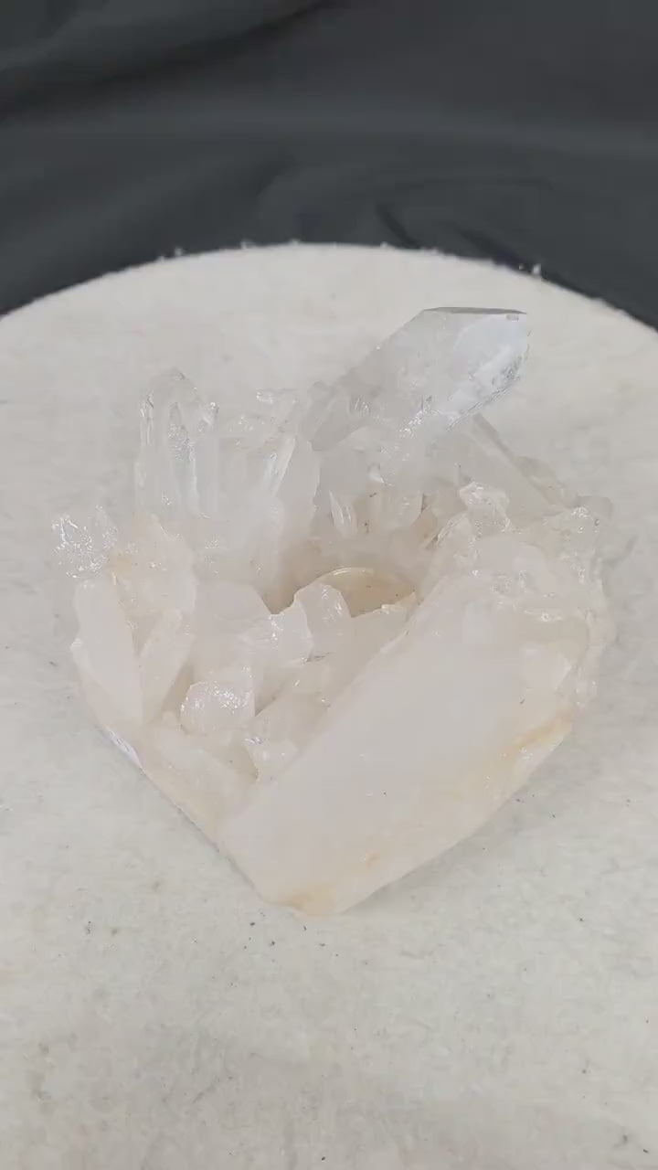 Råkvarts Brazilian Cluster Telys dekorasjon i hvit kvarts med tårnkrystaller, LARGE inntil ca. 1.2kg
