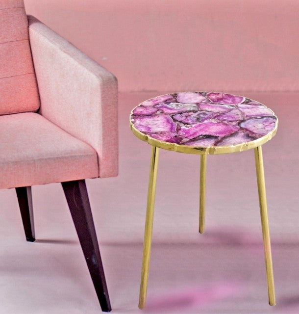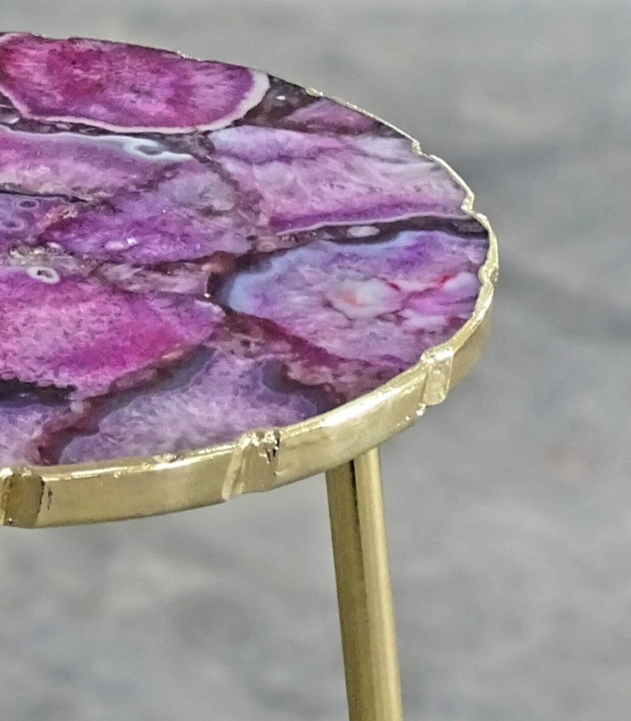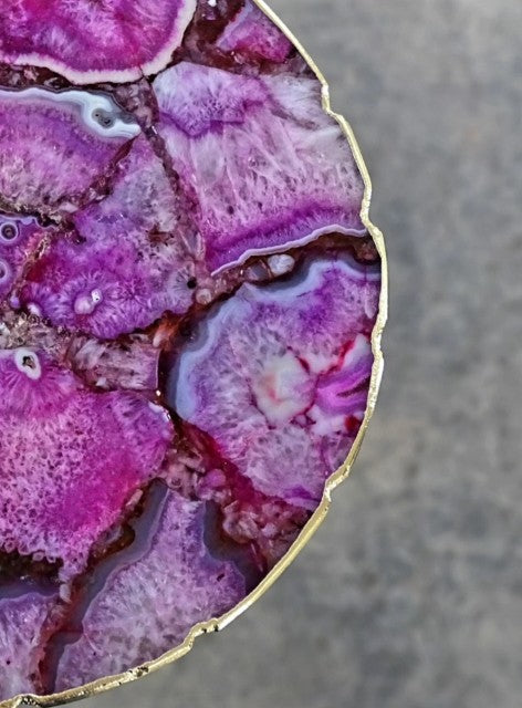 Rosa Agat Composite kaffebord med gulldecorert kant ( gold electroplated ), ca. 30cm. 52cm høy
