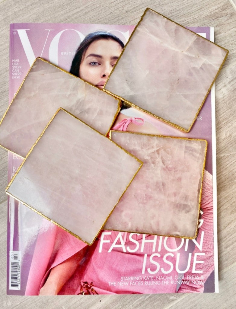 Rosenkvarts Coaster skiver med gullkant, 10mm tykk kant. stk. pris