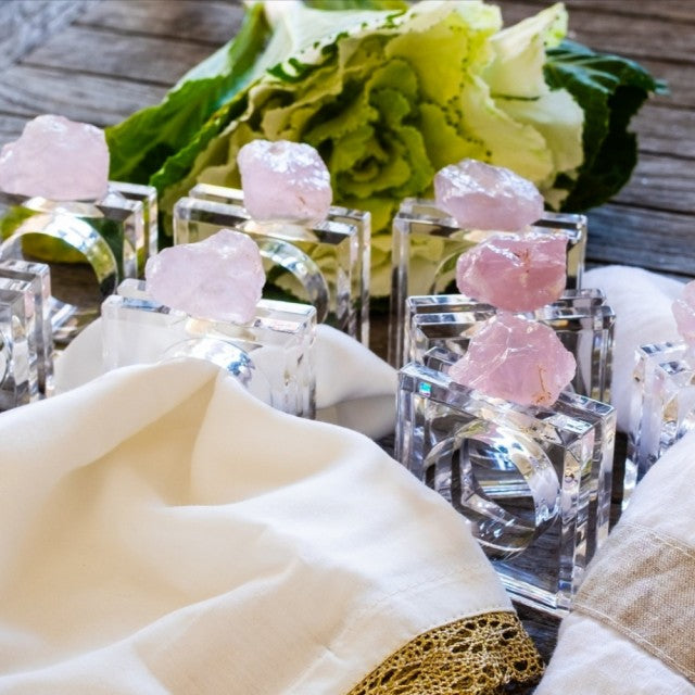 Rosenkvarts rÅkrystall serviettholder i plexiglass