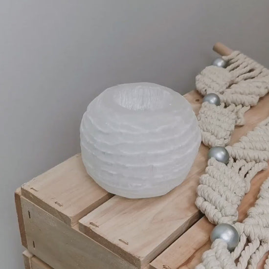 Selenitt Telys dekorasjon , Snowball Design - 10x10cm, 1200gram, Large