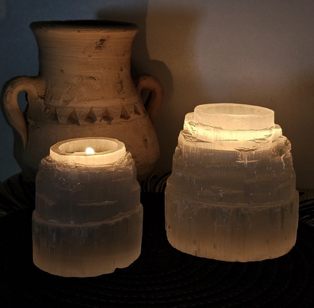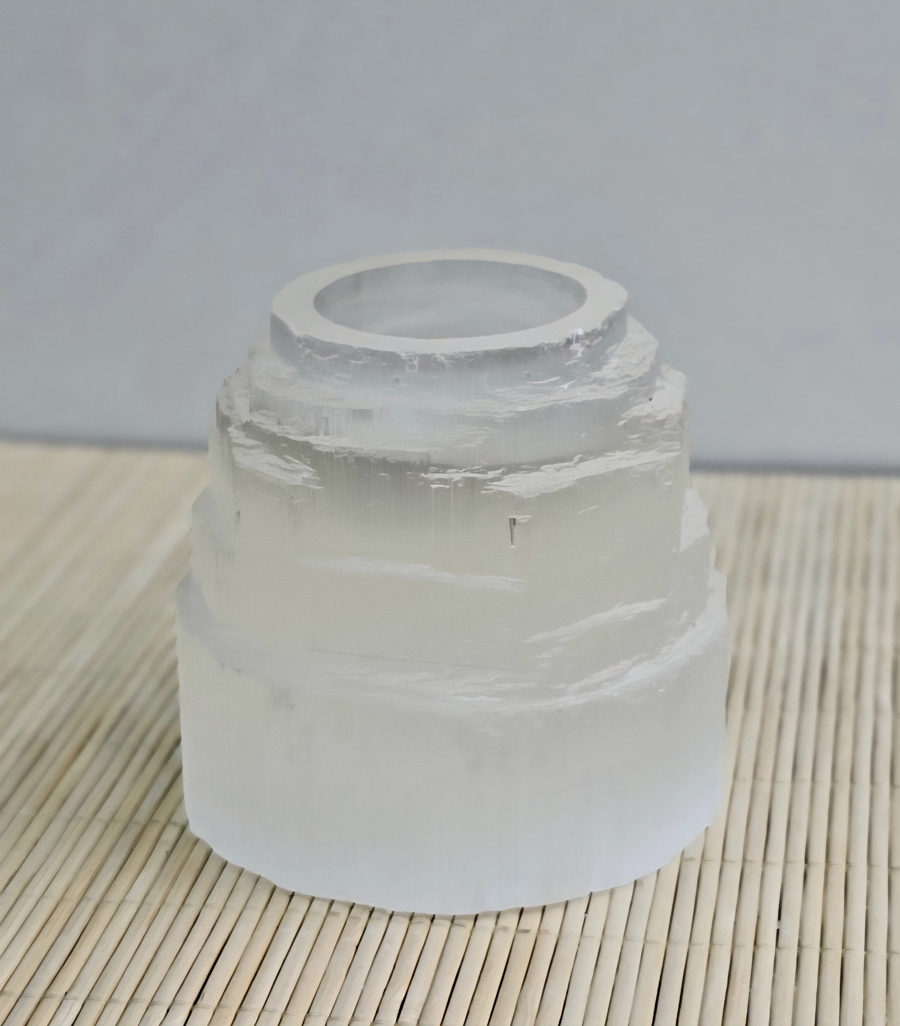Selenitt Telys dekorasjon , Iceberg Design - 8x8cm, 700gram, Medium