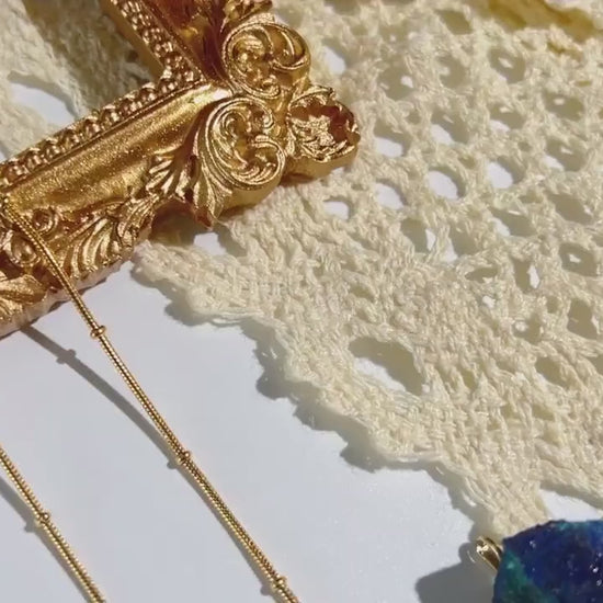 New Raw Azurite Pendant Cluster Necklace, Healing Birthstone Reiki Chakra Third Eye, 24K Gold-Plated Chain