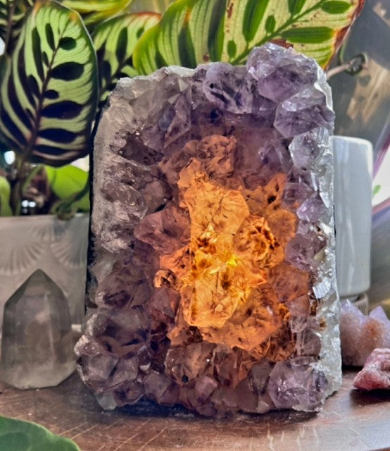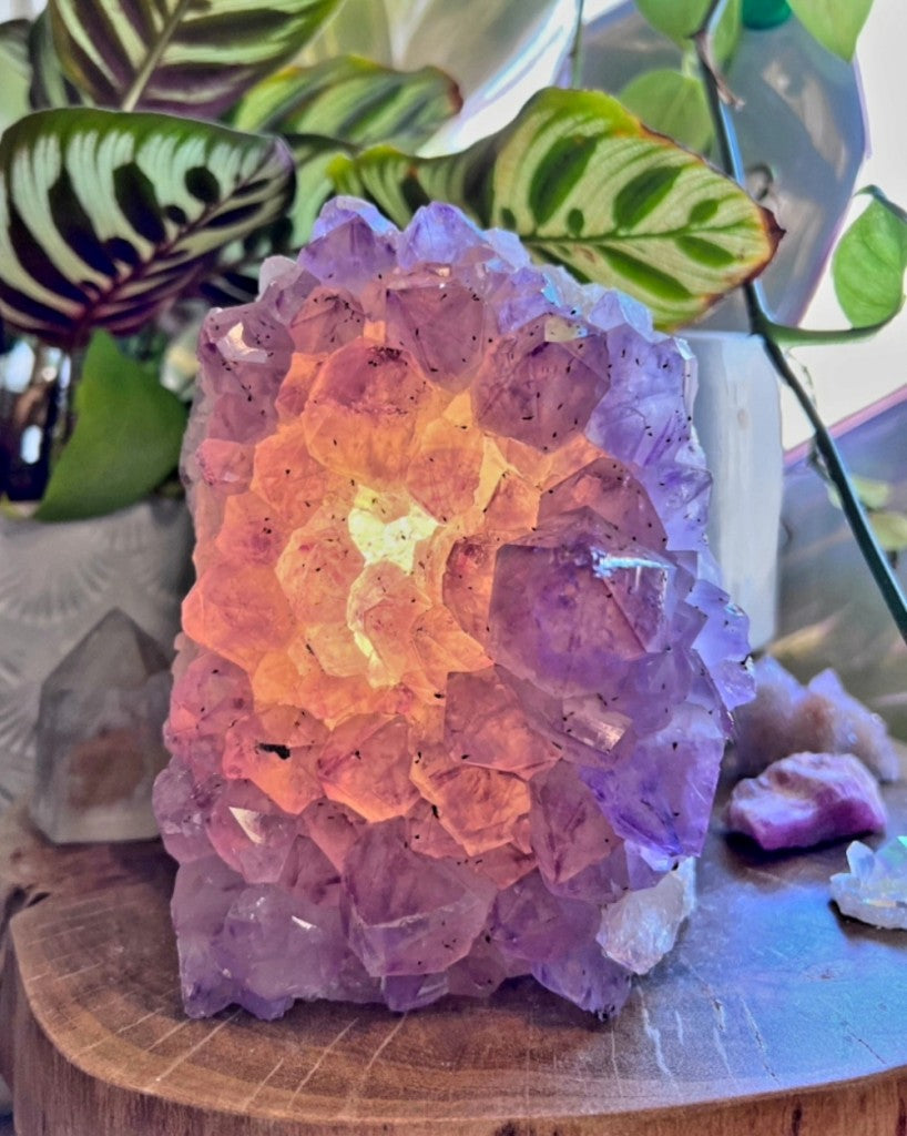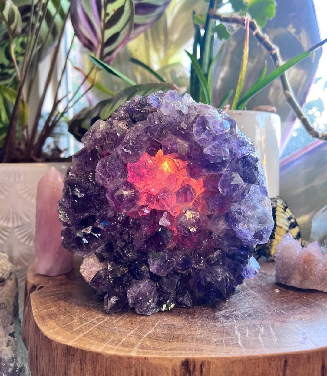 Special XL Large / Stor Ametyst RÅ Kvarts Cluster Lampe fra Brasil, ca. 3 - 4kg m/Ledlys