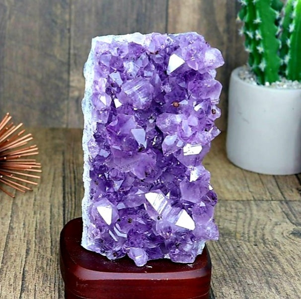 Ametyst Rå Kvarts Cluster Lampe fra Brasil, mellom 1 og 1.5kg og fra ca. 13 - 18cm høyde med led trebase.