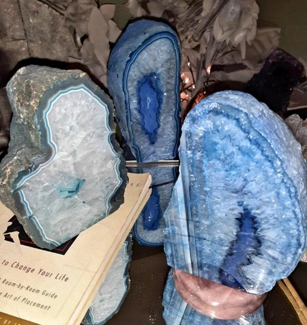 Stor XL blÅ Agat Geode Krystallampe, 18 - 20cm, inkl. trebare m/ledlys og remote control