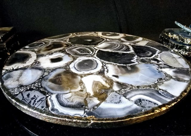Superdeal / Agat Black & White svingbart Coaster bord m/ Gold Electroplated kant - 30x30cm