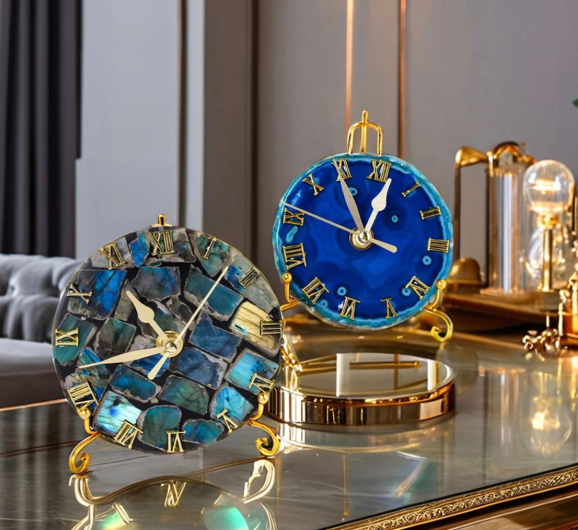 Nye Labradorite bordklokker ( 10 - 12cm skiver ) m/stativ