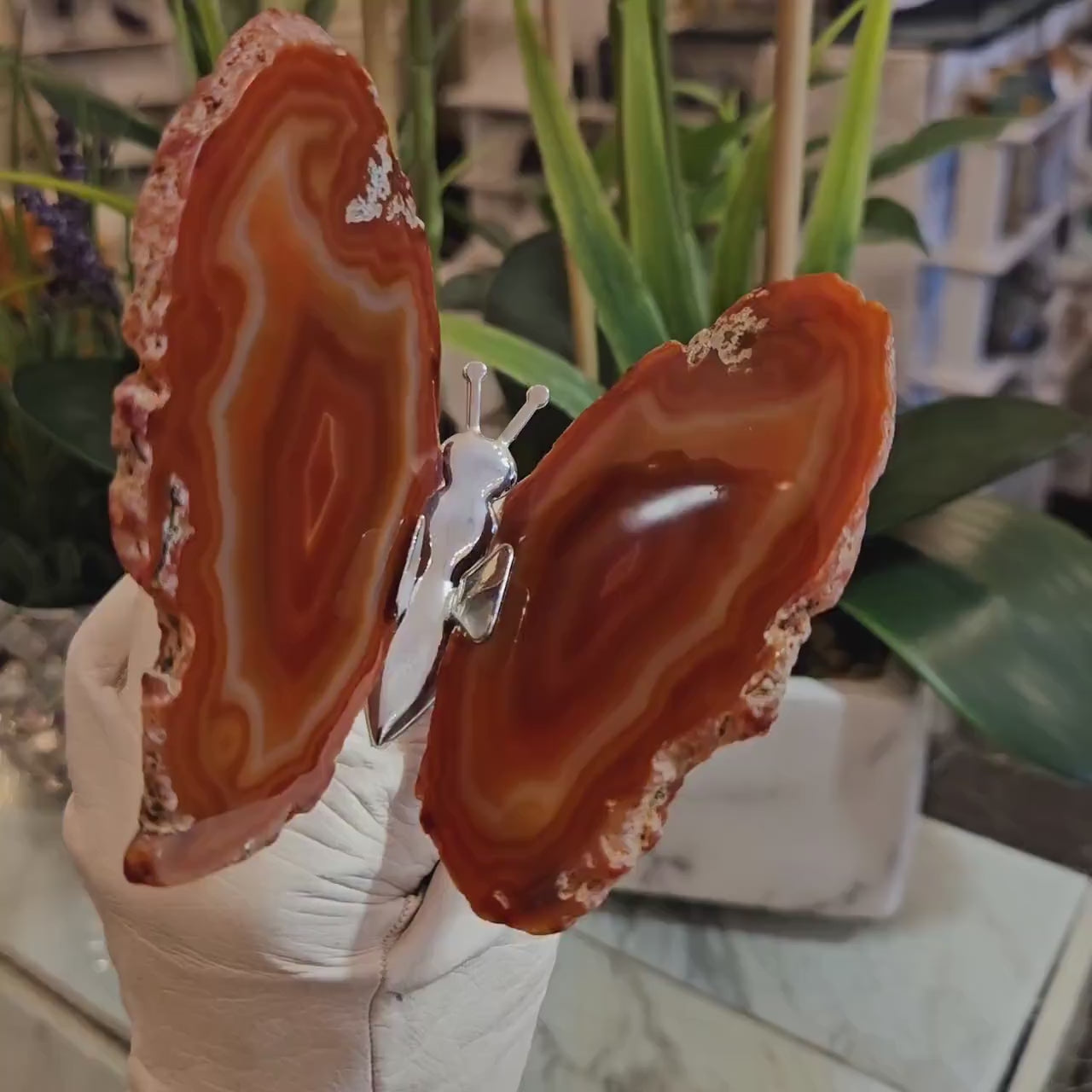 Superflott og vakker Brazilian Orange Caramel Agat Butterfly ca. 8x6cm pr. vinge