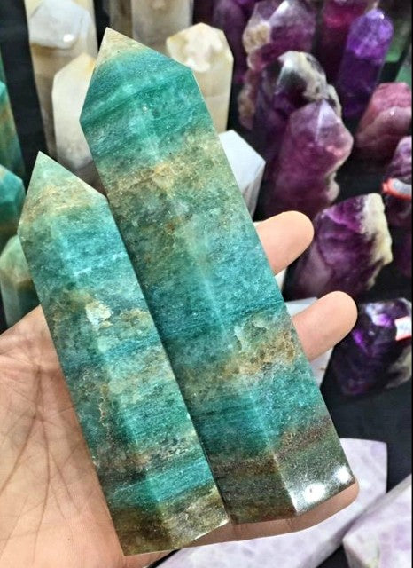 Superlekre BlÅ/Grønne Strawberry Quartz TÅrnkrystaller 12-15cm, ca. 300-400 gram