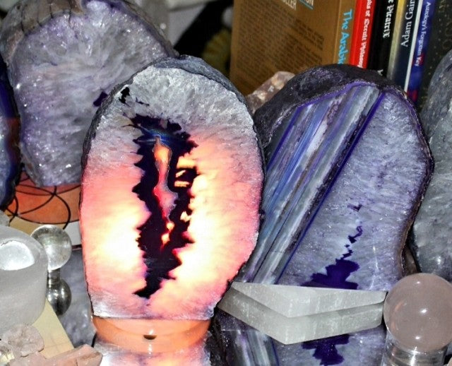 Supervakker XL lilla large Agat Geodelampe, 18 - 20cm.., inkl. trebare m/ledlys og remote control