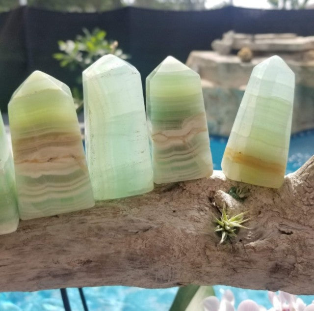Supervakre små Carribean Green Pistachio Calcite Tårnkrystaller, ca. 5cm - 7cm , 100gram