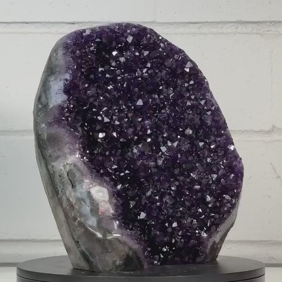 ✧ Whether you're looking to create a serene meditation corner or a captivating centerpiece for your living room this Top Grade Natural Amethyst Geode with Unique large Deep Purple Crystals provides endless possibilities.