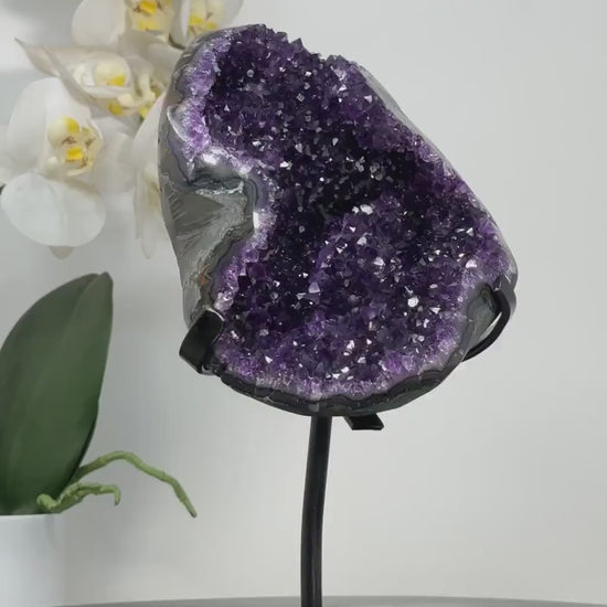 Amethyst Geode with Metallic Stand - Top grade Uruguayan Crystal - MWS2421, 2kg - 22x13.5cm