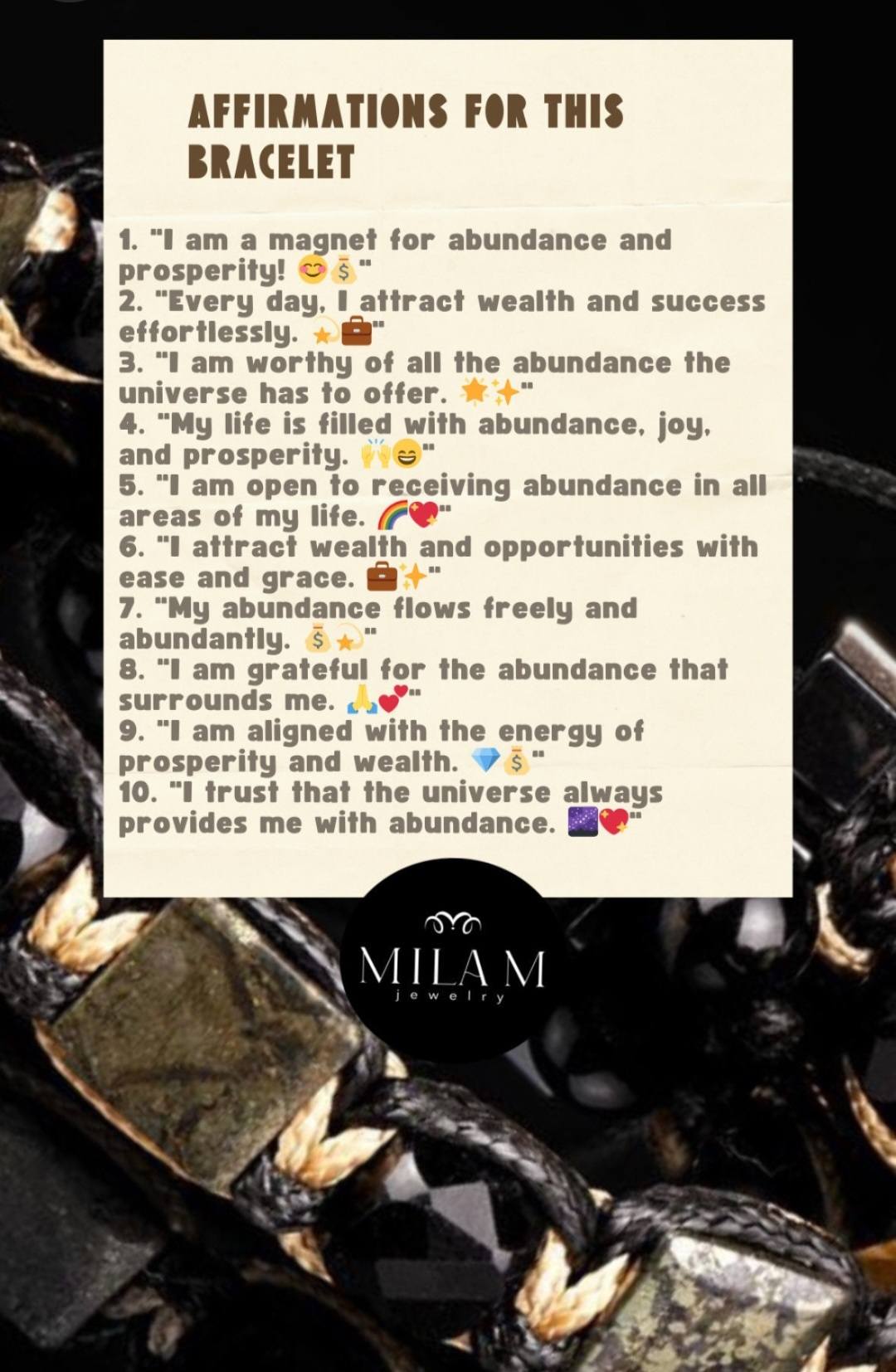 🌟 Pyrite Beads: Known as the stone of prosperity and manifestation, Pyrite fills your aura with abundant energy, attracting wealth, success, and opportunity into your life.