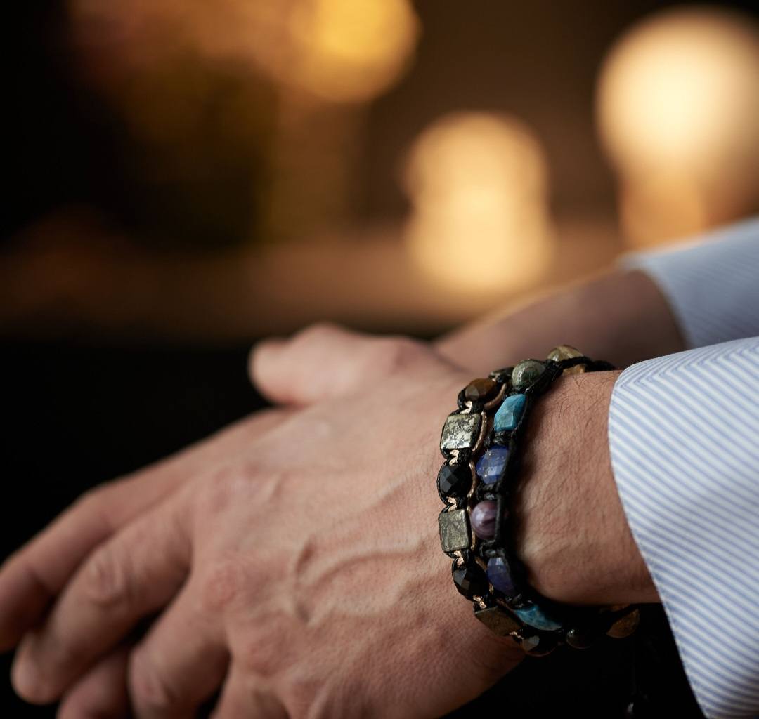 Superlekkert armbånd fra kunstneren Mila i Kyiv Ukraina.. Håndlaget og designet med ekte gemstones. Unisex size, leveres i justerbar størrelse for både han og henne i waxed cord. High Quality Handcraft !