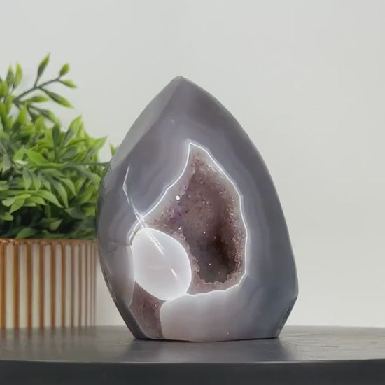 Uruguay Amethyst & Agate Flame Carving Geode, 12 x 10cm - FST0153