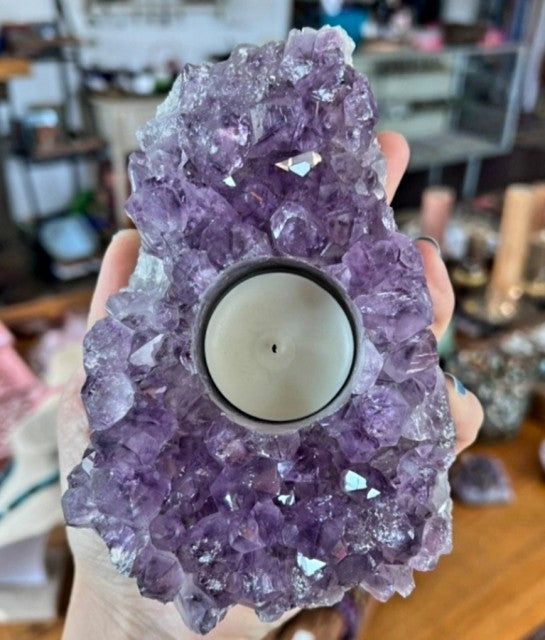 Vakker, AAA+ High Quality Brazilian Ametyst Cluster Telys dekorasjon.. 15 - 17cm, Large