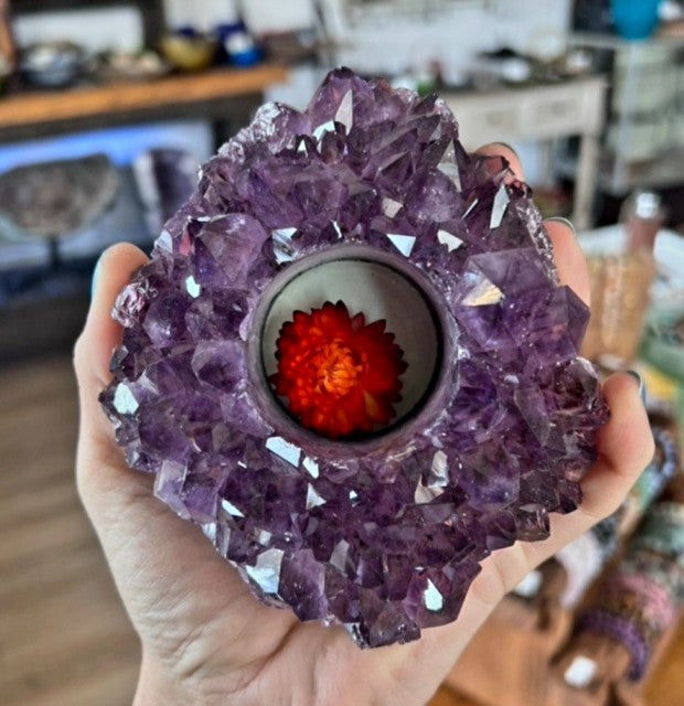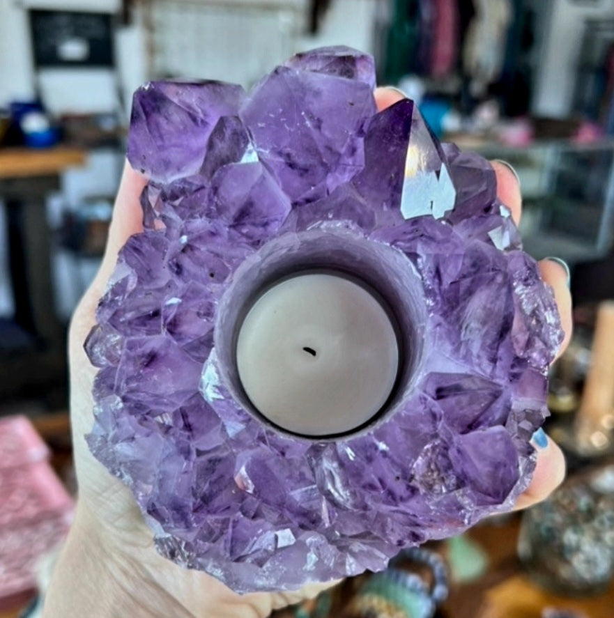 Vakker, AAA+ High Quality Brazilian Ametyst Cluster Telys dekorasjon.. ca. 12 - 13cm, Medium