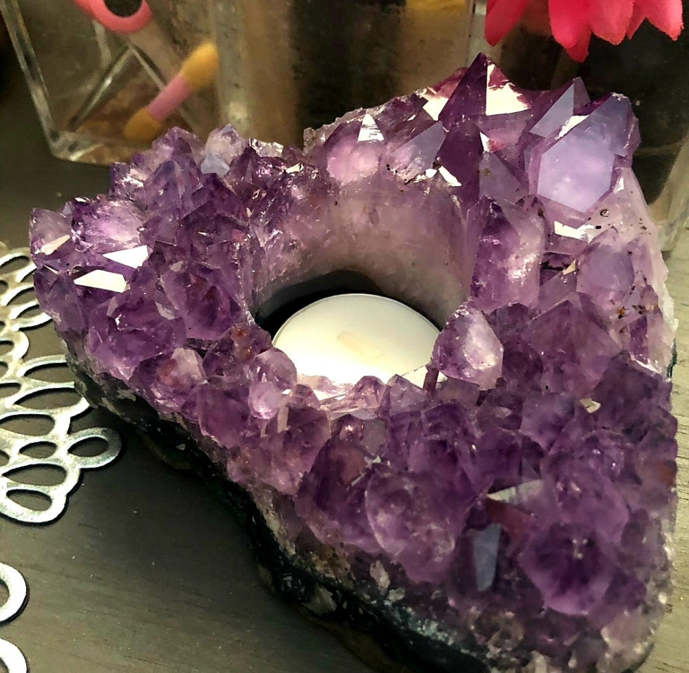 Vakker, AAA+ High Quality Brazilian Ametyst Cluster Telys dekorasjon.. ca. 18 - 20cm, XLarge
