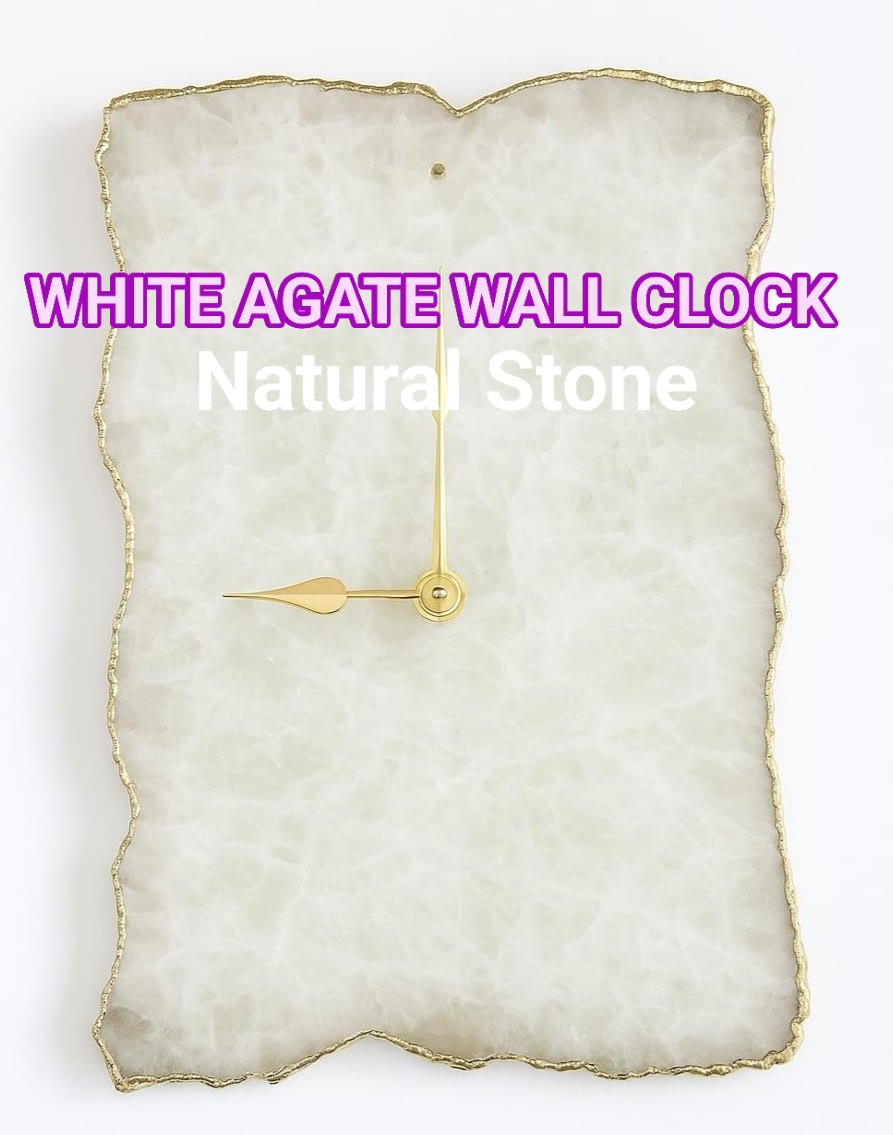 Vakker og eksklusiv XXL Hvit AGATE veggklokke, Gold Electroplated, 38x25cm