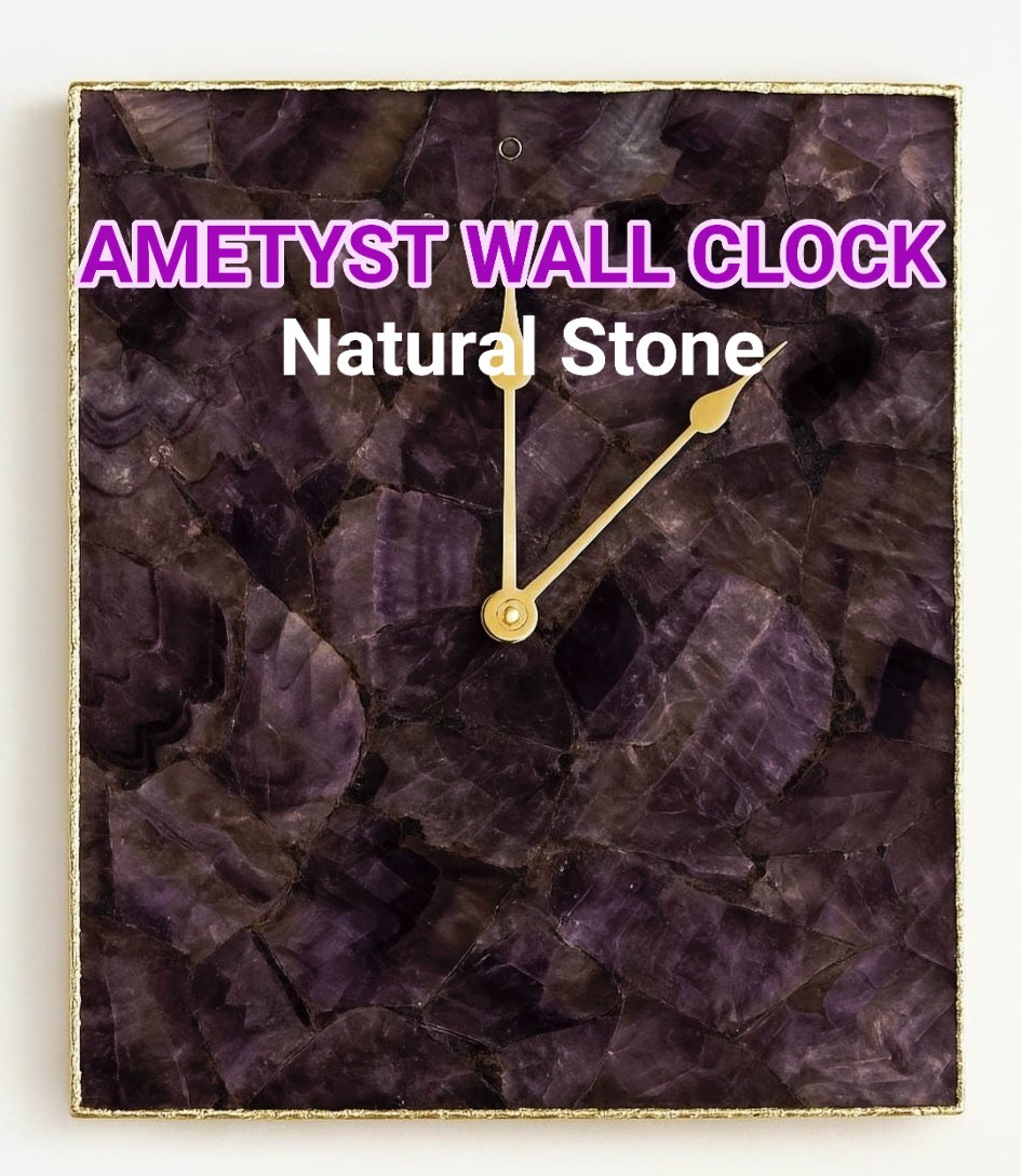 Vakker og eksklusiv rektangulær AMETYST veggklokke, Gold Electroplated, 25cm.