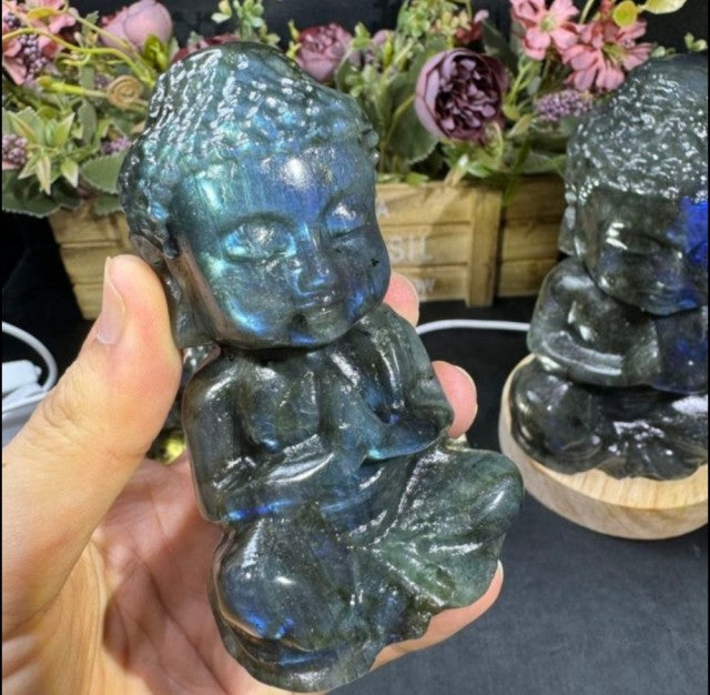 Vakker, håndlaget Buddha 15cm Labradorite, Large