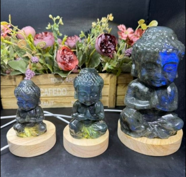 Vakker, håndlaget Buddha 7.5cm Labradorite, small