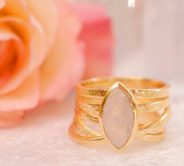 Vakker, håndlaget " Connie " Designring med stor Månesten i oval form, gold plated