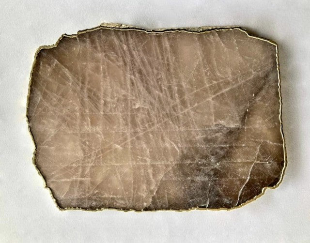 Vakker, håndlaget XL ( 28x18cm ) Smokey Grey Agat Coaster decorskive med gullbelagt kant fra India