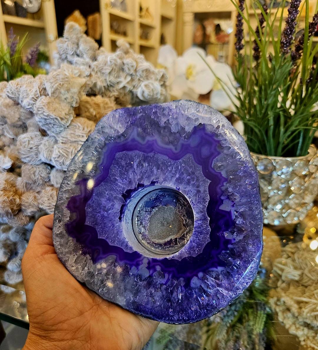 Vakker Lilla Brazilian AGATE Home Decor Telysdekorasjon ca. 12x12cm