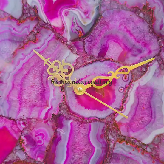 Vakker og eksklusiv PINK AGATE veggklokke, Gold Electroplated, 25cm