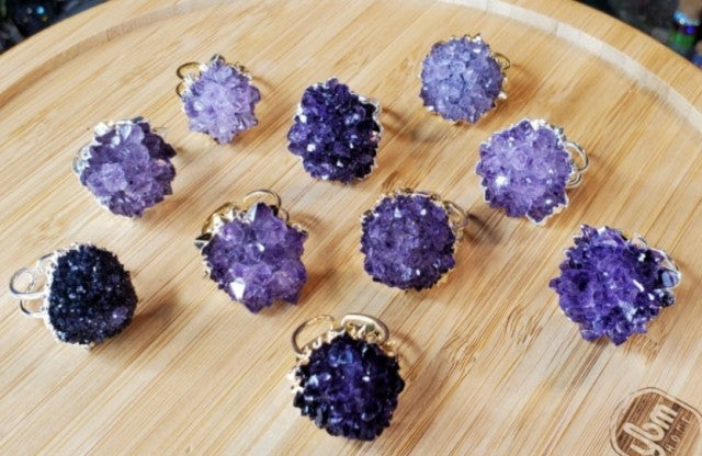 Vakker Uruguay Ametyst Rosett Ring silver electroplated, justerbar.