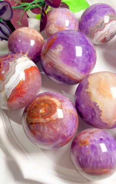 Vakre Ametyst & Mexican Agat Sphere ( Krystallkuler ) , ca. 50 - 60mm Medium